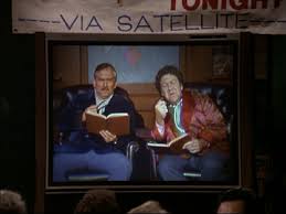 Speaking of Gary… the bar was always at war versus Gary’s Old Towne Tavern. These wars were different sports at which Gary’s always prevailed. Norm participated in the basketball, bowling, and softball against Cheers’ heated rival. The war between the two bars went beyond the field, ice, or court which made this rivalry epic. The picture above shows Norm and his sidekick, Cliff, taking over Gary’s satellite feed during a heavyweight title fight talking Shakespeare.