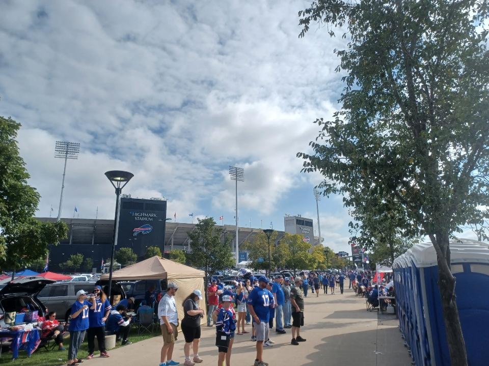 Last Sunday was my first ever Buffalo Bills game in 4th week of September with mid 80’s temperatures. I was not expecting to get sunburnt at a Bills game. The Bills hosted the Saints. The Bills out of the gates started off 3-0 and the Saints came into Sunday’s action without a single win. I found a place to stay in a town close to Orchard Park called Hamburg, which is a German town. Plenty of nice drinking establishments with plenty of food options. Yes, chicken wings were had. Took an Uber ride that morning to the stadium with a six pack of beer. Being my first time, I wanted to see what the Bills Mafia was all about. I wanted to get the full experience of Rich Stadium since it was my first game in Buffalo. Going to see a game in Buffalo on the farewell tour is one of my sports dreams come true. The car ride meant we went down side streets through the burbs and we saw people offering parking for $45.00 on their lawn in front of their houses. All those yards will filling in hours before kick off. It was not just parking, it was instant tailgating parties popping up in your own yard. The closer you got, the parking went up to $60.00. We were looking to get as close to the stadium as possible and join the party in their lots. Around the Bills Stadium, they had a few restaurants and bars on the outskirts of the stadium in both directions. The grills were fired up. Food was sizzling on the grill. The coolers were filled with ice cold beverages. One tent would set off a siren of some kind. When the buses came rolling down the main boulevard filled with Saints players, people chanted “Who Dat” which is a New Orleans thing. Followed by some boos as well by the Bills Mafia. I did notice the Saints fan base showed up in their gold and black team colors supporting their guys. We talked to one Saints fan & he was telling us his group picks out one game a season they go to on the road to watch their Saints play. The atmosphere was electric. People having a good time. Everyone dressed in their team colors. Beers were had. Food was eaten. I thought the Bills Mafia treated the outsiders very nice. Nothing in poor taste. The Saints are not a Bills rival. People watching Josh Allen is like watching the king these days. Many, many number 17 Allen Jerseys on display. I wore my Matt Milano jersey supporting number 58, my favorite current defensive player on the team. I saw some Milano jerseys worn by others. I saw some Jim Kelly jerseys of the past being worn by the older people honoring their legend. Bruce Smith was another one from the 1990’s teams. Some interesting jerseys were Bryce Paup who played with the Bills after those Superbowl appearances from 1995 until 1997.
