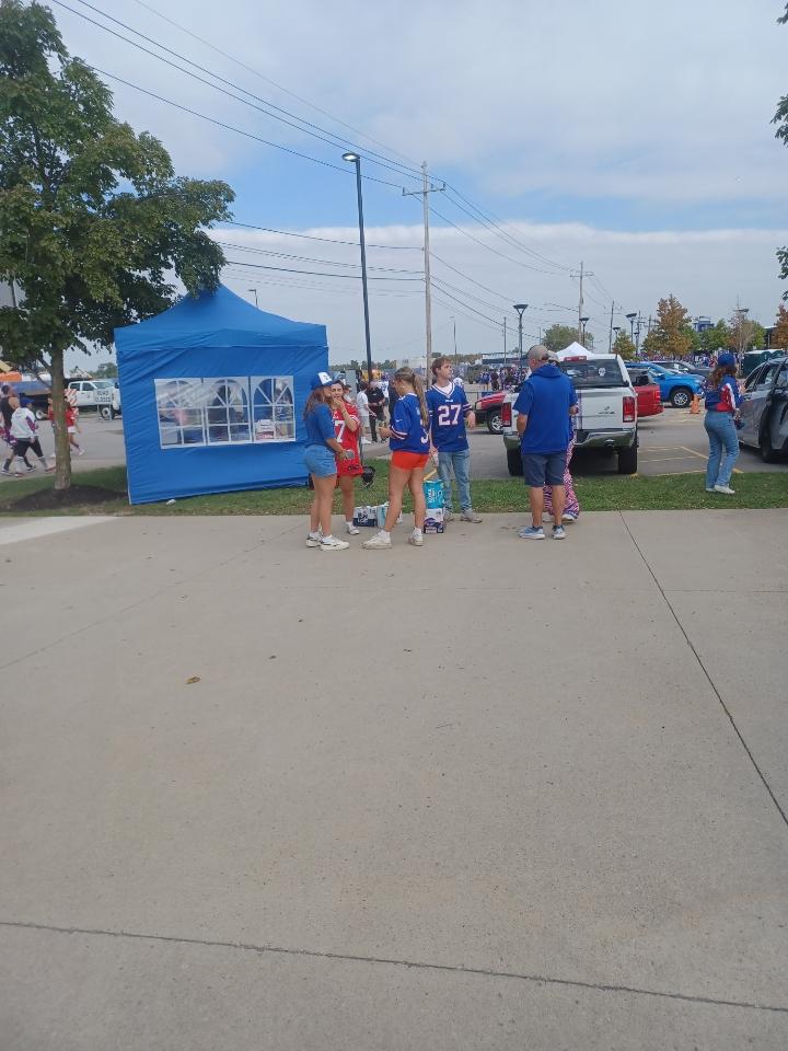 Everyone standing clapping and giving each other high fives. Even total strangers like myself felt like I was family, a Mafia member sworn in without jumping on any tables during the tail gate session of the class. Then the best chant the Bills Mafia do is “Hey! Hey! Hey! Let’s go Buffalo!” It sticks in your head as I think I was chanting in my sleep 14 beers later. The Bills like the tall boys and the taller boys big cans of Labatt Blue 16 0zers and the big bomber of 20 something ounces. They even sold big beer koozies. Very helpful on a steamy day.