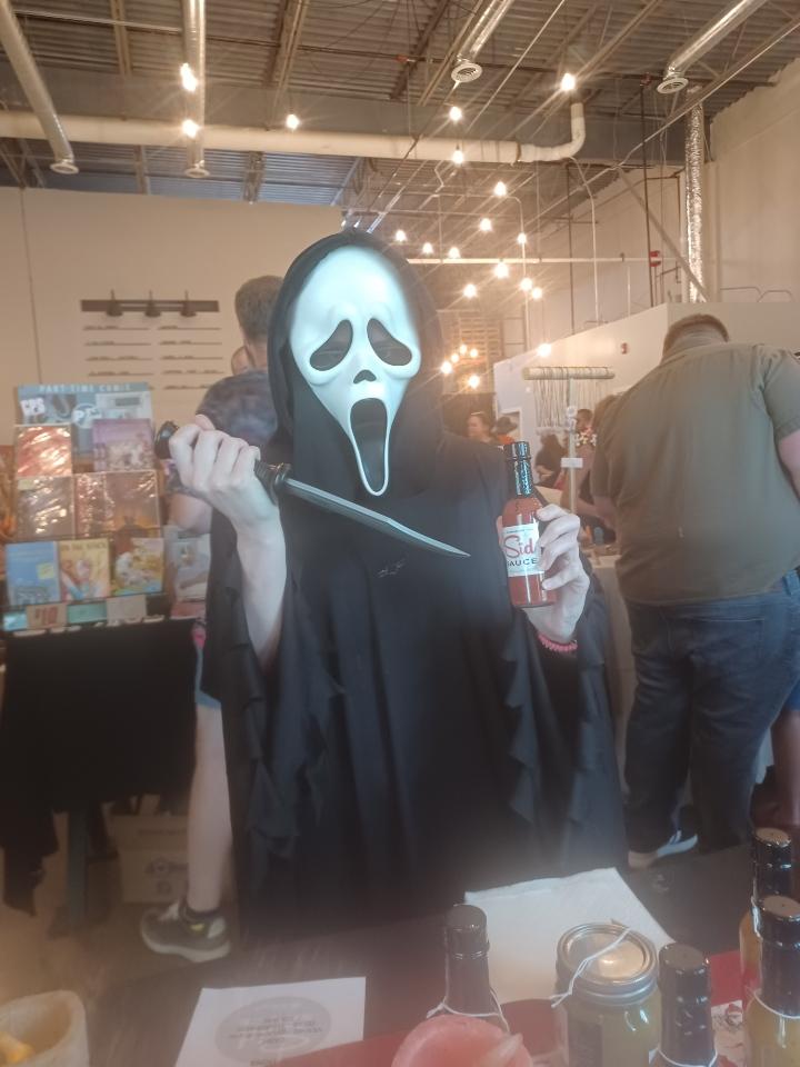 The sales were not fantastic on this day. Being in the hot sauce game you strike up conversations about other sauces. One guy said that now being older, he can’t do the hot stuff anymore. He talked about a hot sauce that was demonic to him back in the day called “Holy Shit!!!”