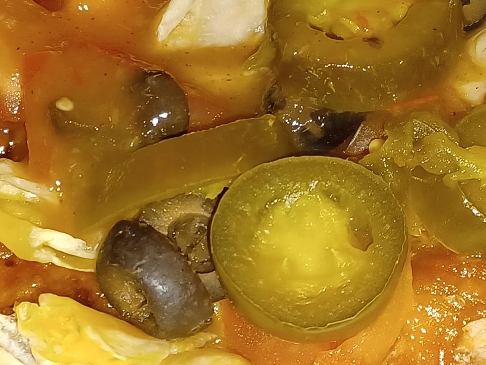 This taco pizza creation is filled with ground beef, cheddar cheese, black olives, tomatoes, jalapeno peppers, and lettuce. It’s the inside of a stacked taco on a soft pizza crust. We did not make this pizza, we ordered it from one our local places we love as this is one of their specialty pizzas. This pizza has some spice already with the jalapenos in the mixture. Adding the Serpentor’s Cobra Peach spices it up to another level in a good way. This peach sauce is made from habanero peppers which is not gasoline on the fire here. The peach with the cinnamon adds additional sweetness to the flavor that creates convulsions in your taste buds in a good way. It gives the pizza balance of sweet with heat. This taco pizza is great without adding anything else on top. I love some kind of hot sauce, salsa, or taco sauce on all my Mexican food. It enhances the flavor for me.